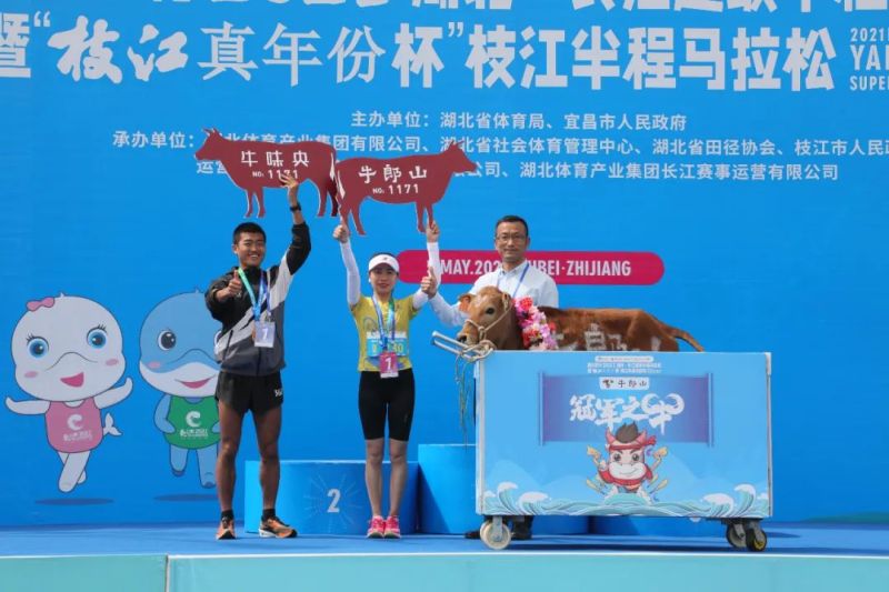 湖北长江超级半程马拉松堪称国内“最牛”赛事,枝江半程马拉松男子、女子组第一名选手除了分别获得2万元奖金,还共同获得枝江牛郎山牛业小镇提供的一头宜昌本地纯种夷陵牛。除此之外,在选手服务上,枝江也是诚意满满,不仅结合“五一黄金周”为参赛选手提供免费畅游同心花海、步步升布鞋文化村、东方年华等所有景点的福利,还结合枝江当地特色美食,在半程终点及完赛包内提供丰富的食物补给,让参赛选手充分感受枝江的热情和特色。