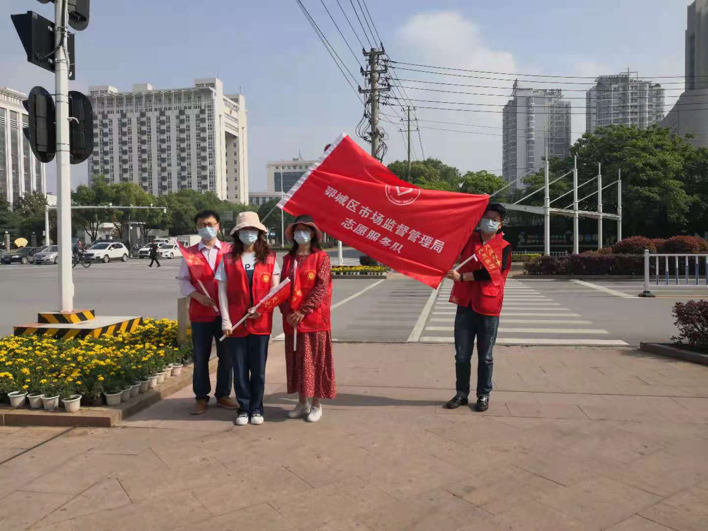 为了进一步倡导市民文明出行,践行党史学习教育成效,5月8日,鄂城区市场监督管理局积极开展“我为群众办实事”活动,组织党员志愿者穿上红色志愿者马甲,在滨湖西路与吴都大道交叉路口开展文明交通志愿服务活动。