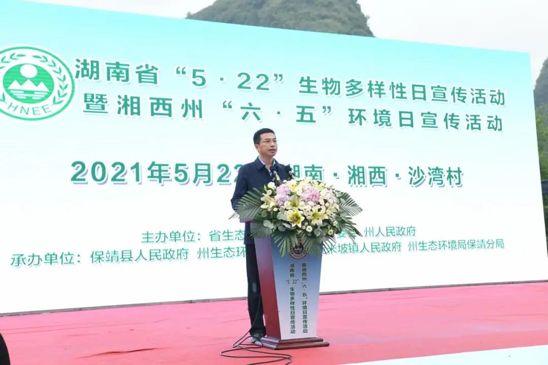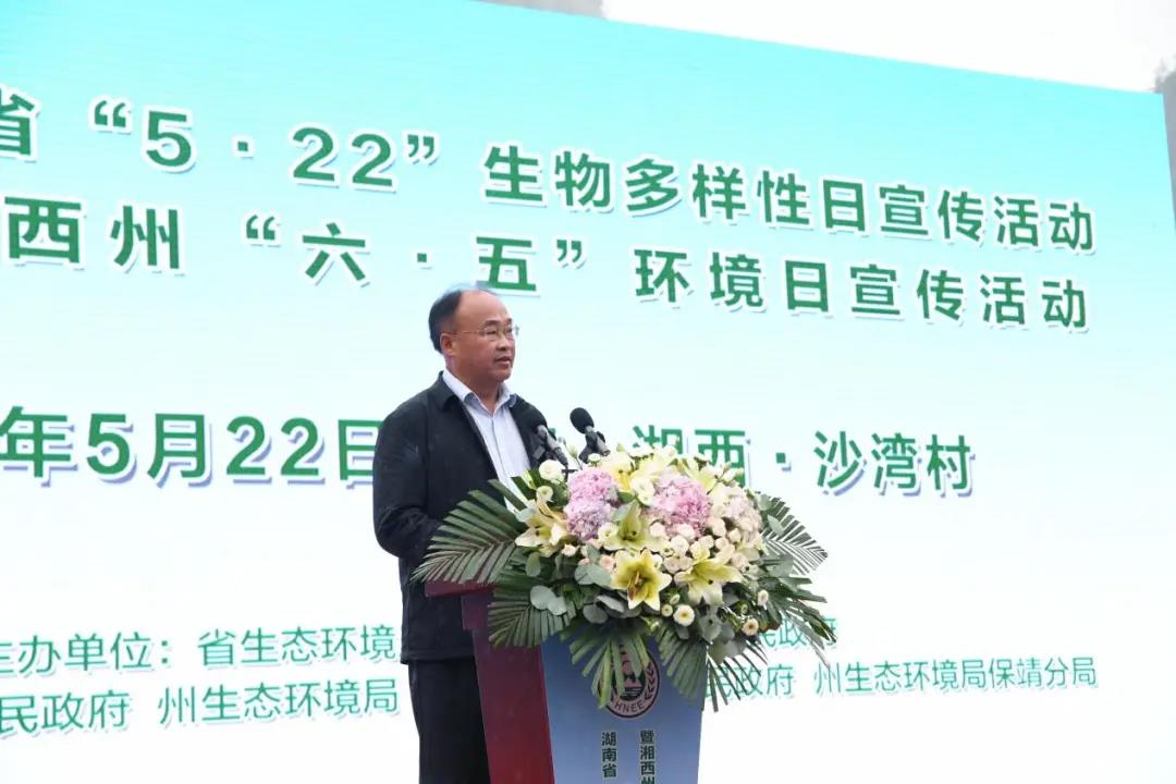 5月22日上午,由湖南省生态环境厅、湘西自治州人大常委会、湘西自治州人民政府联合主办的湖南省“5·22”国际生物多样性日宣传活动暨湘西州“六·五”环境日宣传活动在湘西州保靖县碗米坡镇沙湾村举行。省生态环境厅党组副书记、副厅长刘群,湘西州人大常委会副主任宛庆丰,州人民政府副州长麻超等出席活动。