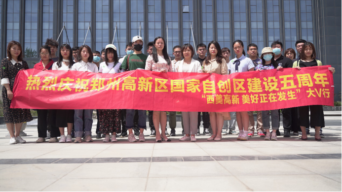 ?5月27日,在郑州高新区国家自创区获批五周年之际,由郑州高新区创新发展局、郑报高新融媒中心联合开展的“看西美高新 美好正在发生”互联网大V行+自创区五周年成果巡展进校园活动正式启动,20家来自全国各地的网络媒体、自媒体大V、微博、抖音等知名媒体和10名辖区在校大学生齐聚高新,三天时间里,以媒体和大学生的视角,全方位、多角度看城市发展,观产业振兴,实地感受郑州高新区社会发展新成就、新气象,全面了解高新区五年来在国家自创区建设方面的经验做法和成果成效。?