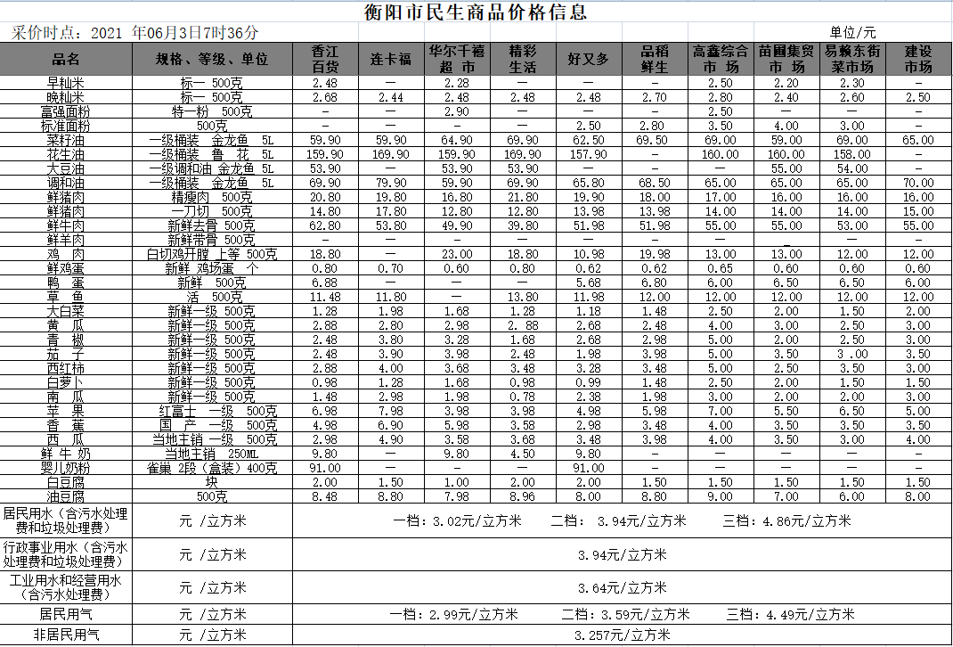 · 【物价】 2021-06-3衡阳市民生价格信息