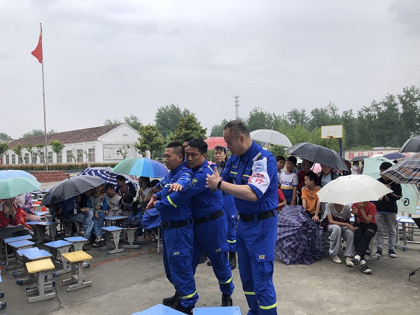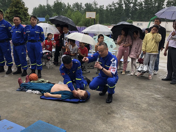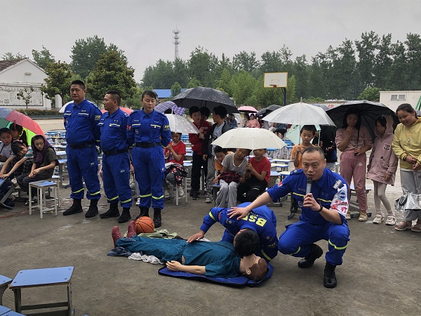 随着天气气温不断升高,为切实做好学校防溺水安全教育工作,提高同学们的安全意识和自救互救能力,刘集中心校董庙小学近期一直在向同学们宣传防溺水知识。各班级每天都会利用课余时间向同学们宣讲防溺水安全教育知识。各班级利用不同的方式方法进行宣讲,有黑板报的形式、看多媒体小视频的案例、《致家长的一封信》、家长微信群等各种宣传手段。 董庙小学还特地邀请固镇县蓝天救援队到学校开展防溺水安全知识宣讲活动。6月3日下午两点半蓝天救援队的队员们向同学们演示溺水时如何自救以及他人溺水时如何救助。同时还向师生们演示了海姆立克急救法,为孩子们的安全增添了一份保障。 刘集中心校董庙小学通过一系列的宣传和演示,使孩子们对防溺水知识有了一定的了解,董庙小学希望孩子们能度过一个安全、愉快的夏季。