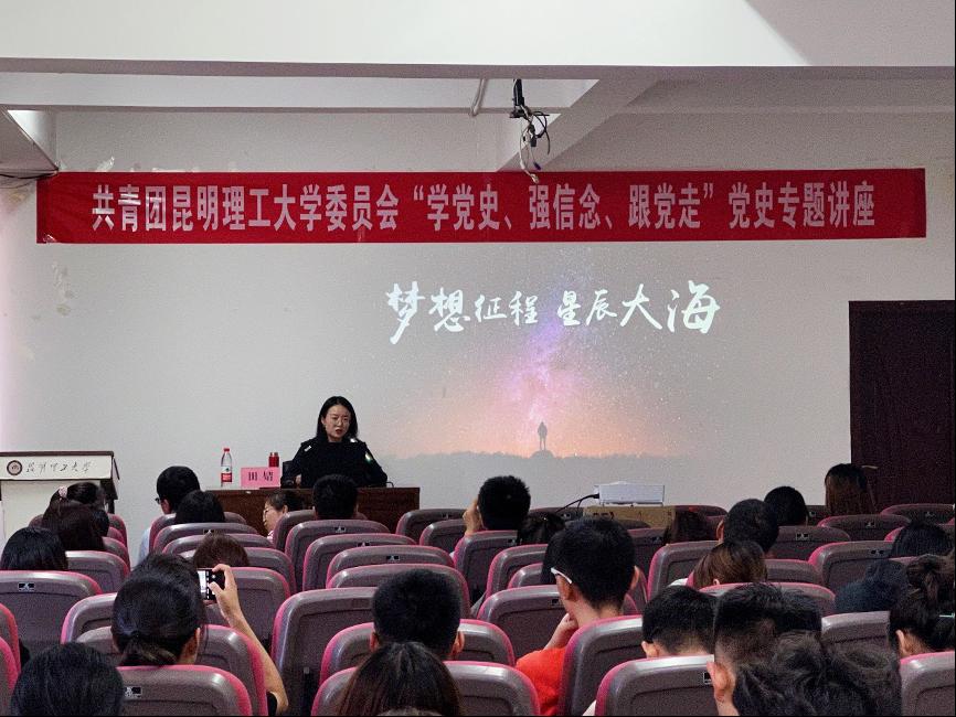 田婧讲述了中国共产党的诞生历史和取得的辉煌成就,号召广大青年学生要树立远大理想、热爱祖国、担当时代责任、勇于砥砺奋斗、练就过硬本领、锤炼品德修为,为中华民族的伟大复兴贡献青春力量。
