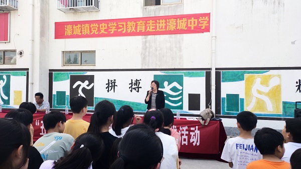 为增进青少年对党史的了解,让孩子们进一步认识党史、了解党史、学习党史、尊重党史,从小树立理想和信念,当好红色基因的“传承人”,2021年6月4日,固镇县濠城镇党史宣讲团走进濠城中学,引导广大学生树立“知史爱党,知史爱国”的高尚情怀,让红色基因、革命薪火代代相传。本次宣讲由濠城中学校长戴淑英主持,濠城镇文化馆馆长邢波主讲。