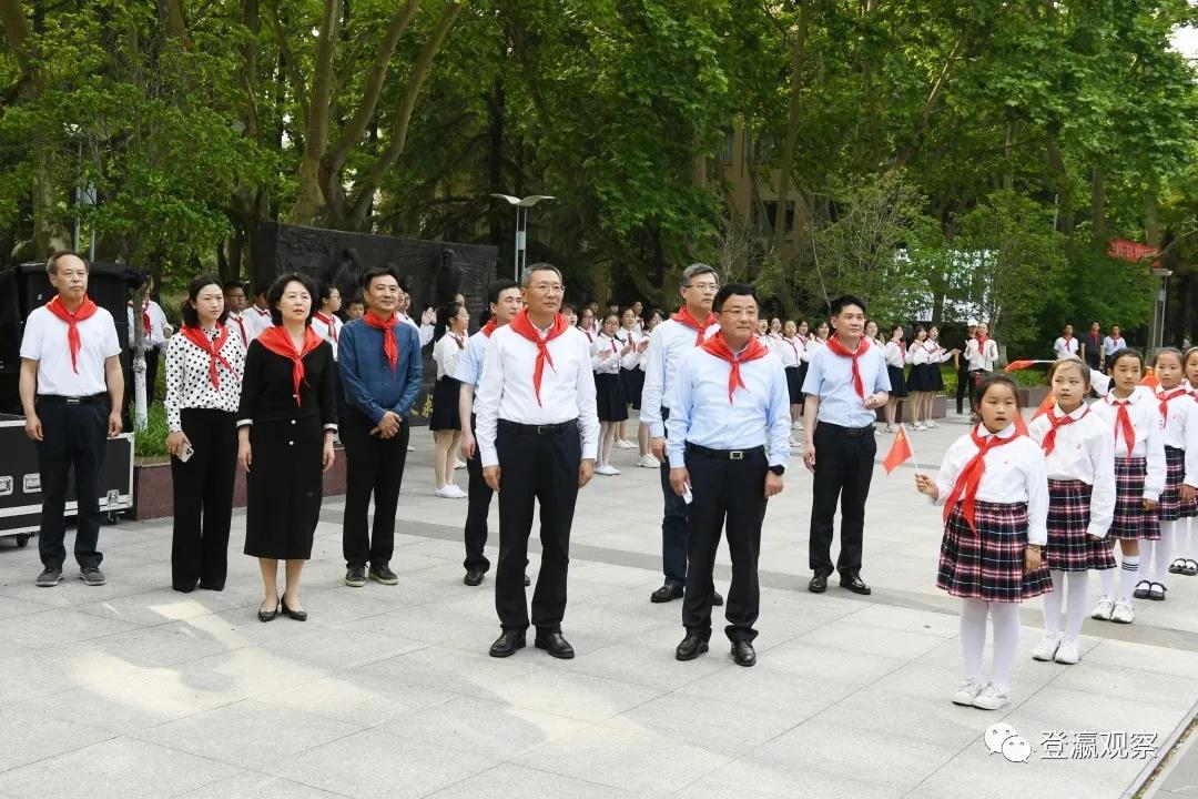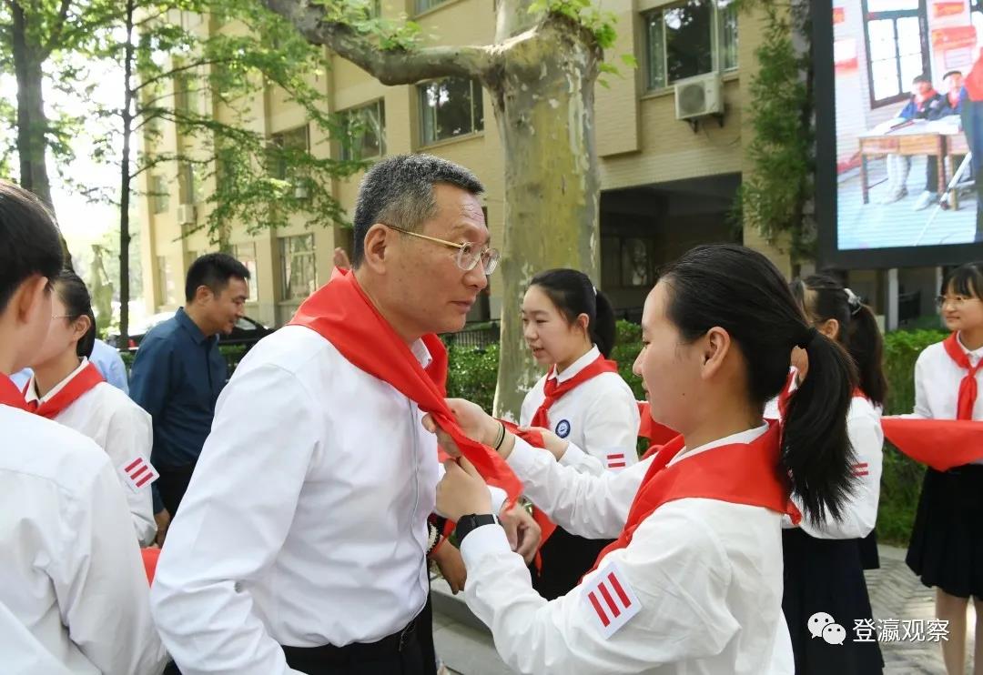 ▲少先队员为市委书记戴源佩戴红领巾