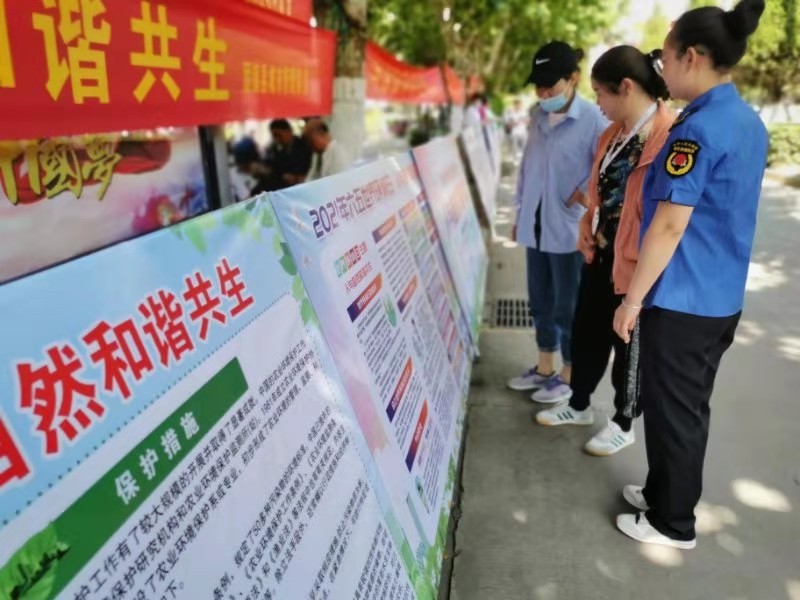 为进一步提高群众的环保意识,营造绿色文明和谐的生态环境。6月5日,固镇县城市管理局参与“6.5”世界环境日宣传活动,通过悬挂横幅、互动咨询、发放宣传单等各种有效形式开展宣传活动,积极营造宣传氛围,号召和引导群众积极参与到环境保护中来,牢固树立保护环境从我做起,从小事做起的理念,以实际行动减少能源资源消耗和污染排放,自觉践行绿色生产和生活方式。