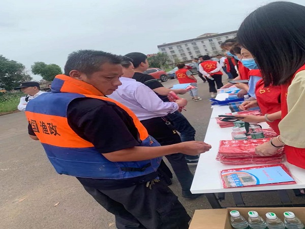 下午两点整,镇政法办发动长岭居委会八名网格员在长岭码头进行普法宣传。网格员们个个身着红色志愿服,有的向码头居民们发放传单,有的向路人发放《法律进乡村知识读本》和《法律援助漫画集》等宣传册……现场宣传氛围浓厚,学习法律的热情十分高涨。通过这种发放传单、宣传手册、说理释法、政策解答等形式,对长江流域10年禁渔的规定和政策进行宣传讲解,号召辖区群众做到“不制作、不购买、不使用”捕渔工具。