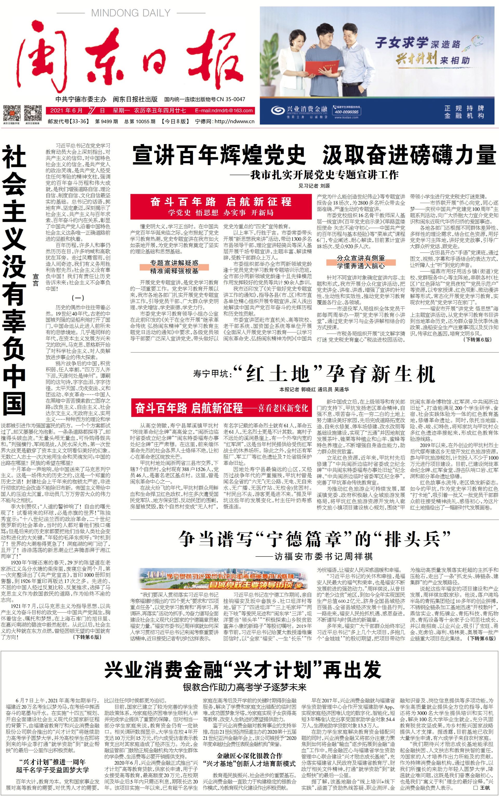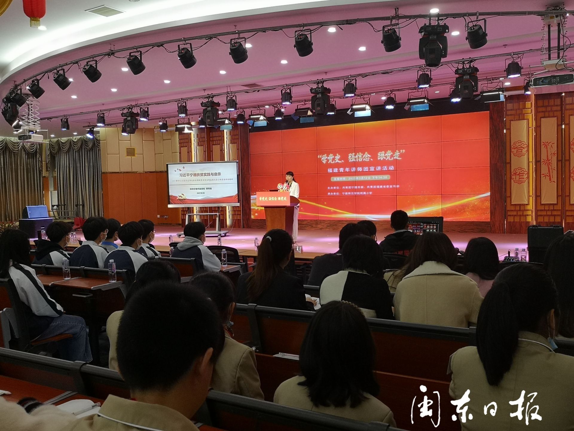 市委宣讲团赴市直机关、高等院校、老干部系统、国资国企系统等单位开展《全面深入开展党史学习教育——以学习闽东革命史、弘扬闽东精神为例》《中国共产党为什么能创造世纪伟业》等专题宣讲报告会18场次,为2800多名听众带去全面准确、严谨生动的专题宣讲。