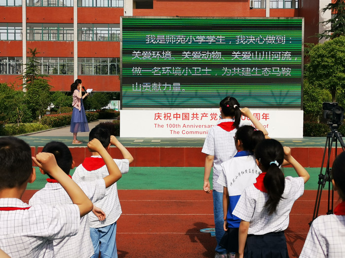 活动中,郑旻老师利用视频资料向全体师生介绍了“世界环境日”的由来,又播放了2021年生态环境部制作的“六·五”环境日主题宣传片,倡导在同一片蓝天下生活、呼吸的每一个公民都应牢固树立保护生态环境的理念,切实履行好呵护环境的责任。最后,郑旻老师带领全体学生进行了环保誓言宣誓。