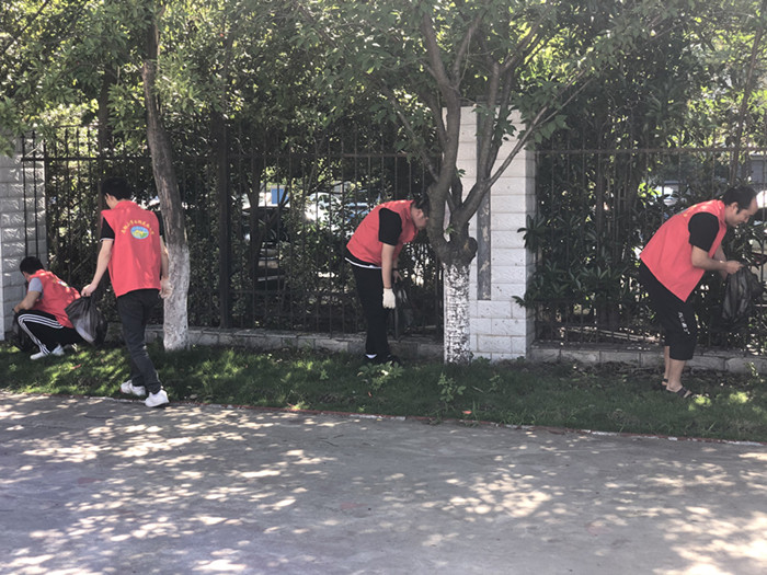 该校近30名党员和青年教师统一身着红色志愿者马甲,手持抹布、扫帚、垃圾夹等劳动工具,对校园内宣传橱窗、走廊玻璃进行擦洗,对校园卫生死角进行细致打扫,并对学校周边绿化带和花坛中的烟头、纸屑等进行捡拾清理,美化家园环境。