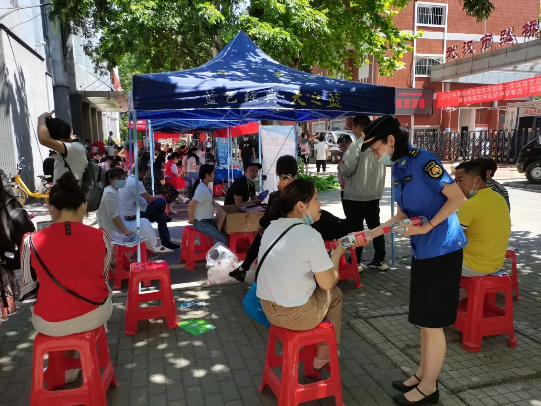 高考期间,汉阳城管提供“保姆式”服务,5所学校考点周边均设置了“高考便民服务点”,贴心地为考生及送考家长准备矿泉水、小扇子等防暑物资,口罩类防护用品以及人丹、清凉油等急救用品。