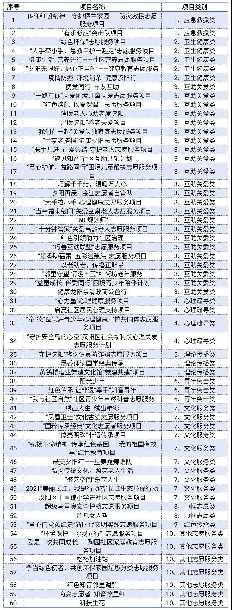 2021年汉阳区志愿服务项目大赛入围复赛名单公示
