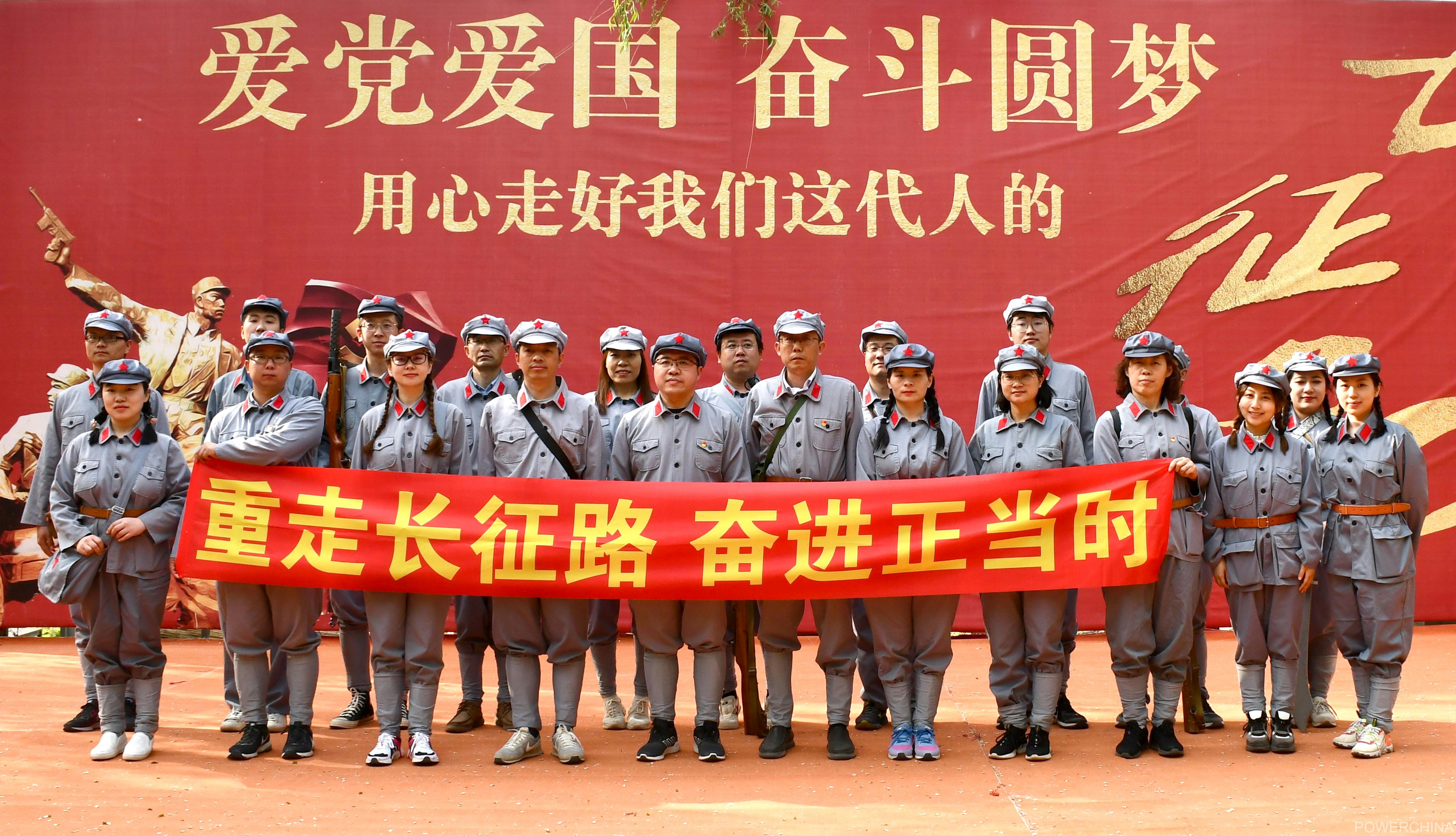 感悟红军心,他们重走长征路。4月20日,水电基础局科研设计院开展“重走长征路”红色拓展主题党日活动。活动模拟还原当年红军长征历程重要的10个点位,在全程4公里的长征路途中,大家穿越碉堡、迈过浮桥、模拟战地救护、倾听战役历史、朗诵毛主席诗词《七律长征》,期间群众深情演绎《十送红军》、《拥军秧歌》来倾诉衷肠,感恩伟大的中国共产党,最后全体队伍在甘肃会宁三军大会师后集体合唱《我和我的祖国》将重走长征路活动推向了高潮。
