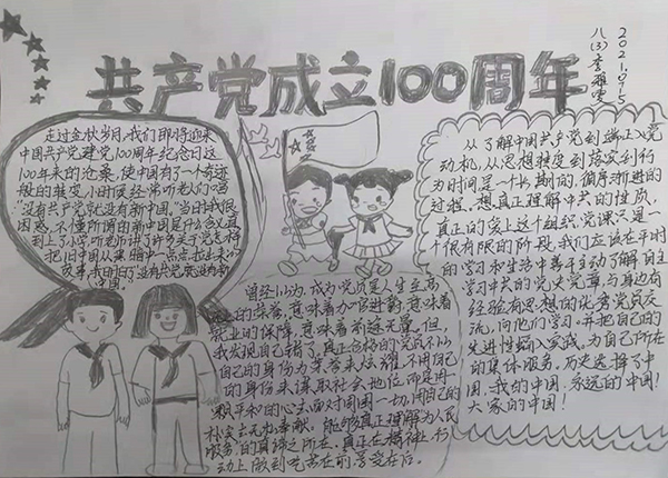 另外,各班级还通过黑板报、手抄报等形式来庆祝建党100周年,展现了班级特色,同时展示了中国共产党的百年奋斗历程,同学们将红色基因根植于心,听党话,跟党走,凝聚力量做社会主义事业的合格建设者和接班人。