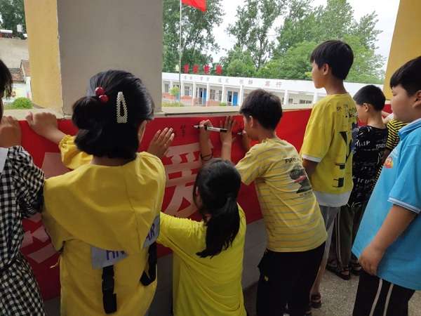 杨庙中心校石门小学举行百人防溺水签名活动