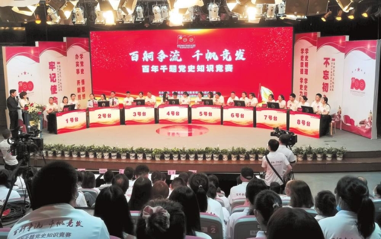 图为“百舸争流 千帆竞发”百年千题党史知识竞赛决赛现场。