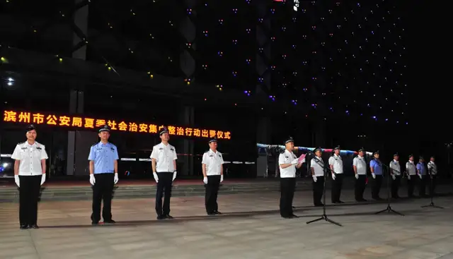 “局长同志,滨州市公安局夏季社会治安集中整治行动出警警力集合完毕。请指示。”