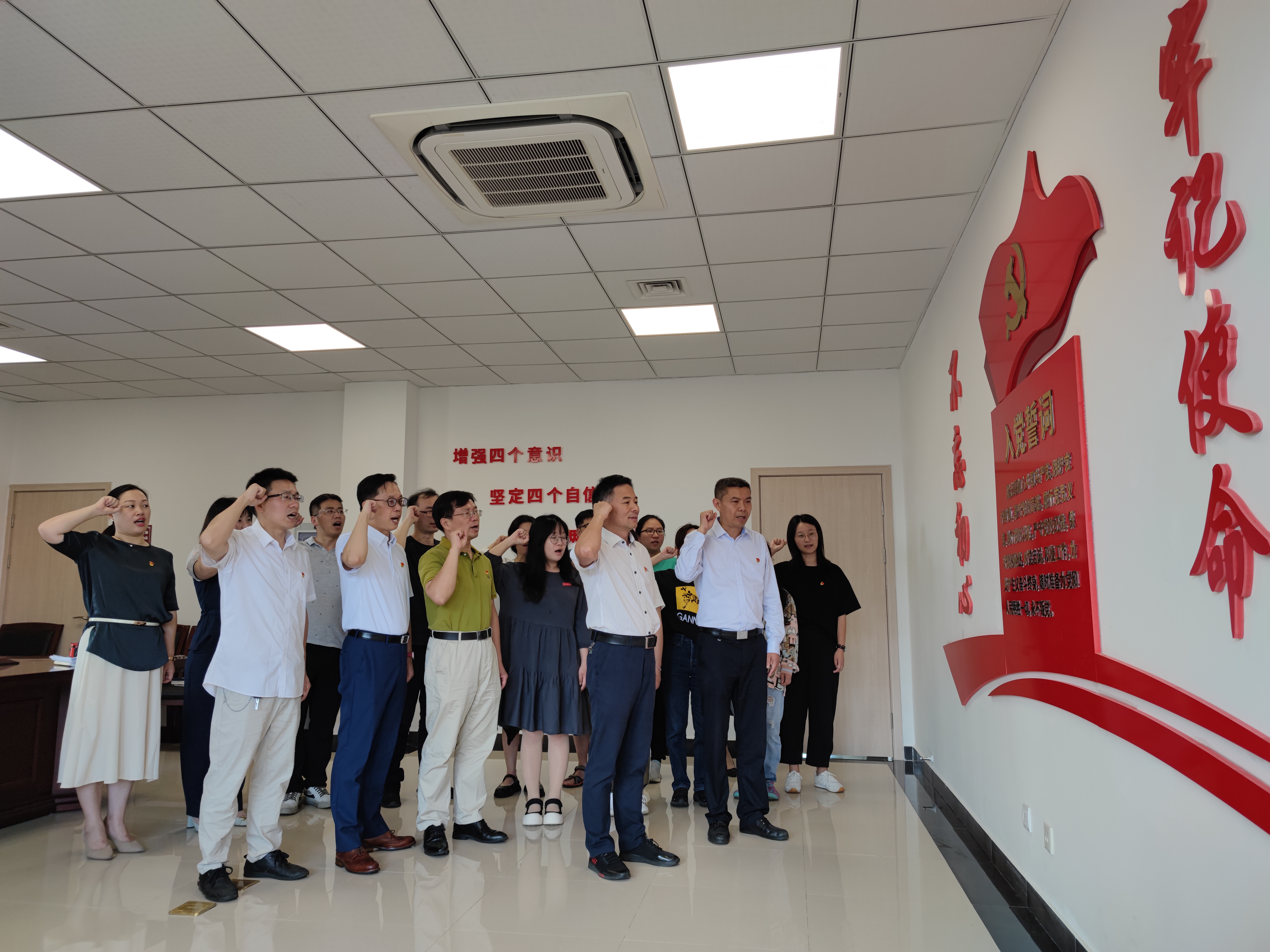 宣誓前,学院党委组织全体党员集中学习,由陈小林同志领学习近平总书记两次重温入党誓词的讲话精神。习近平总书记在2017年10月31日参观一大会址时说:“入党誓词字数不多,记住并不难,难的是终身坚守。每个党员要牢记入党誓词,经常加以对照,坚定不移,终生不渝。”在6月18日,习近平总书记和国家领导同志来到中国共产党历史展览馆,参观“‘不忘初心、牢记使命’中国共产党历史展览”,感悟党的百年奋斗之路。参观结束后,习近平总书记带领中央领导同志和党员领导干部重温入党誓词。铿锵有力的宣誓声响彻大厅,久久回荡。这是初心使命的再宣示,这是接续奋斗的再出发。