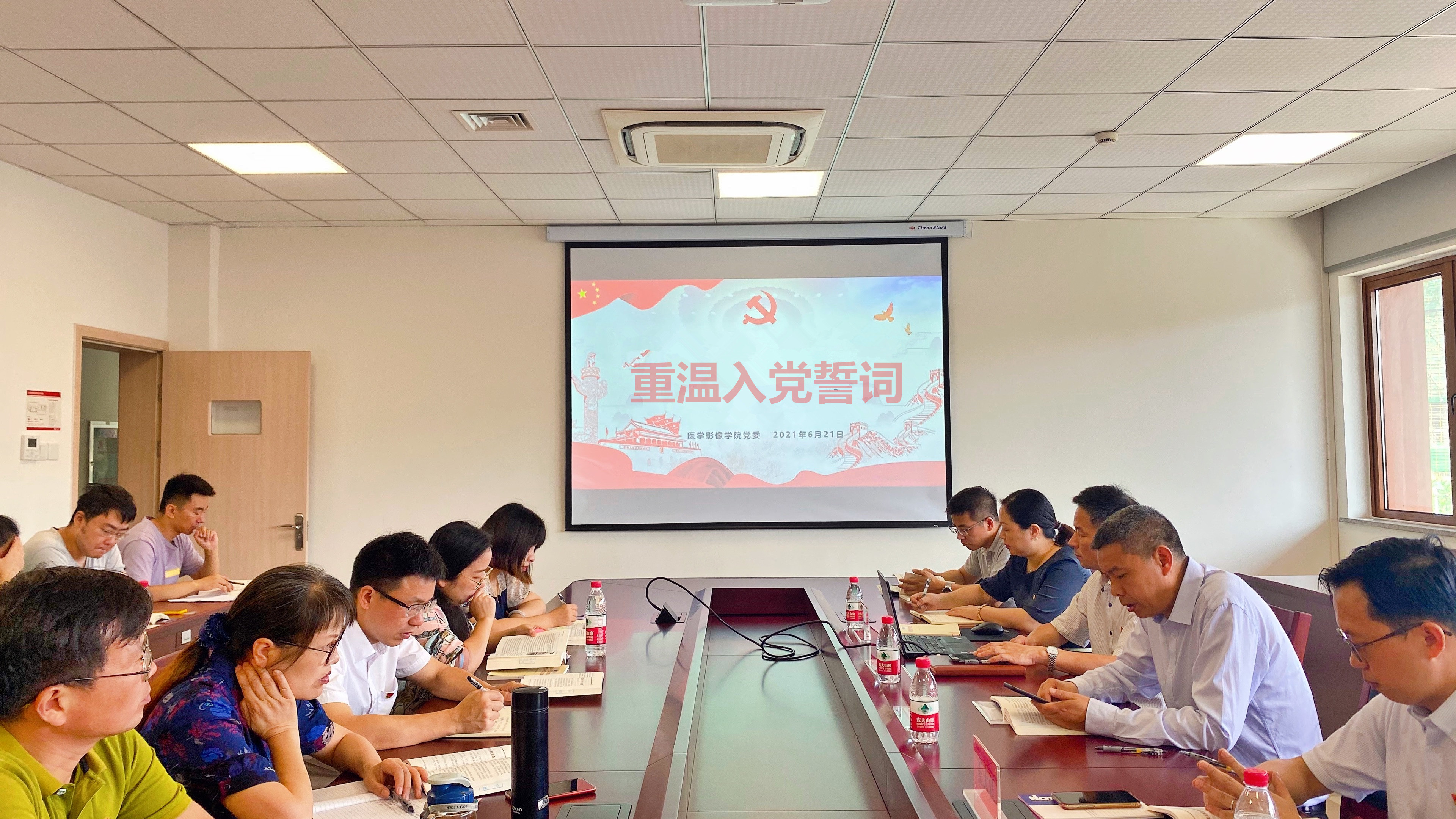 近日,为纪念党的百年华诞,深化党史学习教育,医学影像学院党委开展了一次重温入党誓词的主题党日活动。校党委委员、副校长何贤晨,学院全体党员参加了本次活动,学院党委书记陈小林主持。