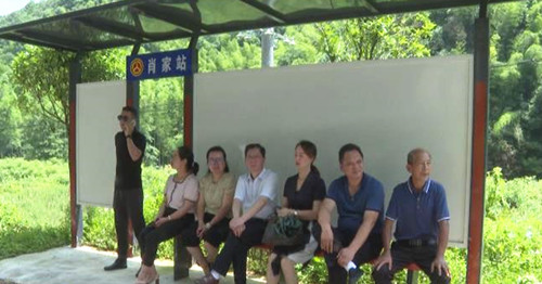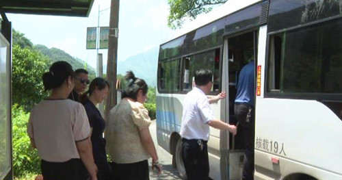 在临湘市羊楼司镇龙窖山村,一辆公交汽车正缓缓地驶入村头的上下接客点,接驳村民。在以前,这里的村民要去到19公里以外的羊楼司镇才能乘坐公交到达市内。现如今,村民们已经实现了‘出门柏油路,抬脚上公交车’的美好愿景。”