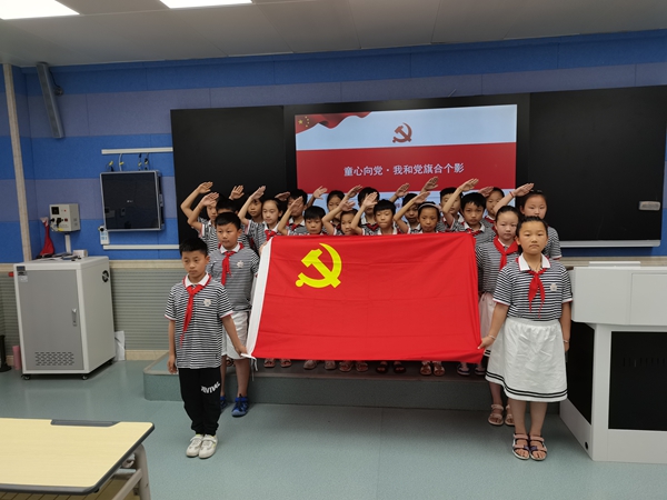 活动中,还依次进行重温入队誓词、向党旗敬礼、我和党旗合个影等环节。