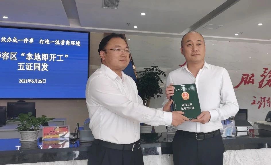 据悉,这是该区“拿地即开工”五证同发审批被确定为全省优化营商环境先行试点以来,首次实现“拿地即开工”五证同发,也是党史学习教育为民办实事的又一务实之举。胡黎明表示:这是我在联投集团工作12年来,又一次刷新了手续办理的“联投速度”,也见证了改革创新的“鄂州速度”。在优化营商环境方面,华容区委区政府作出了率先垂范,这让我们投资企业切实感受到了华容营商环境的便利,也将增强我们在鄂州华容投资的决心与信心。下一步,我们将继续在区域城镇化、旧城改造、产业引进等方面做好企业应有的工作,为武鄂同城化发展尽企业之力。
