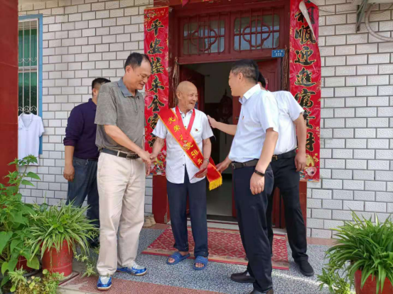 (本网讯)在中国共产党百年华诞即将到来之际,6月24日上午,区政协党组书记、主席熊友秋来到太和镇子坛村,走访慰问子坛村老党员陈世航,并为他颁发“光荣在党50年”纪念章。太和镇党委负责人张文选陪同。