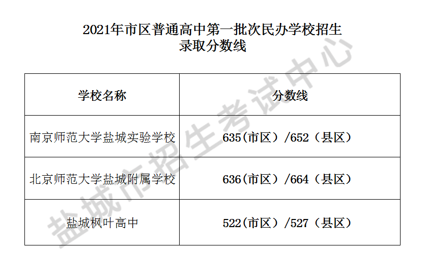 2021年市区普通高中第一批次民办学校招生录取分数线