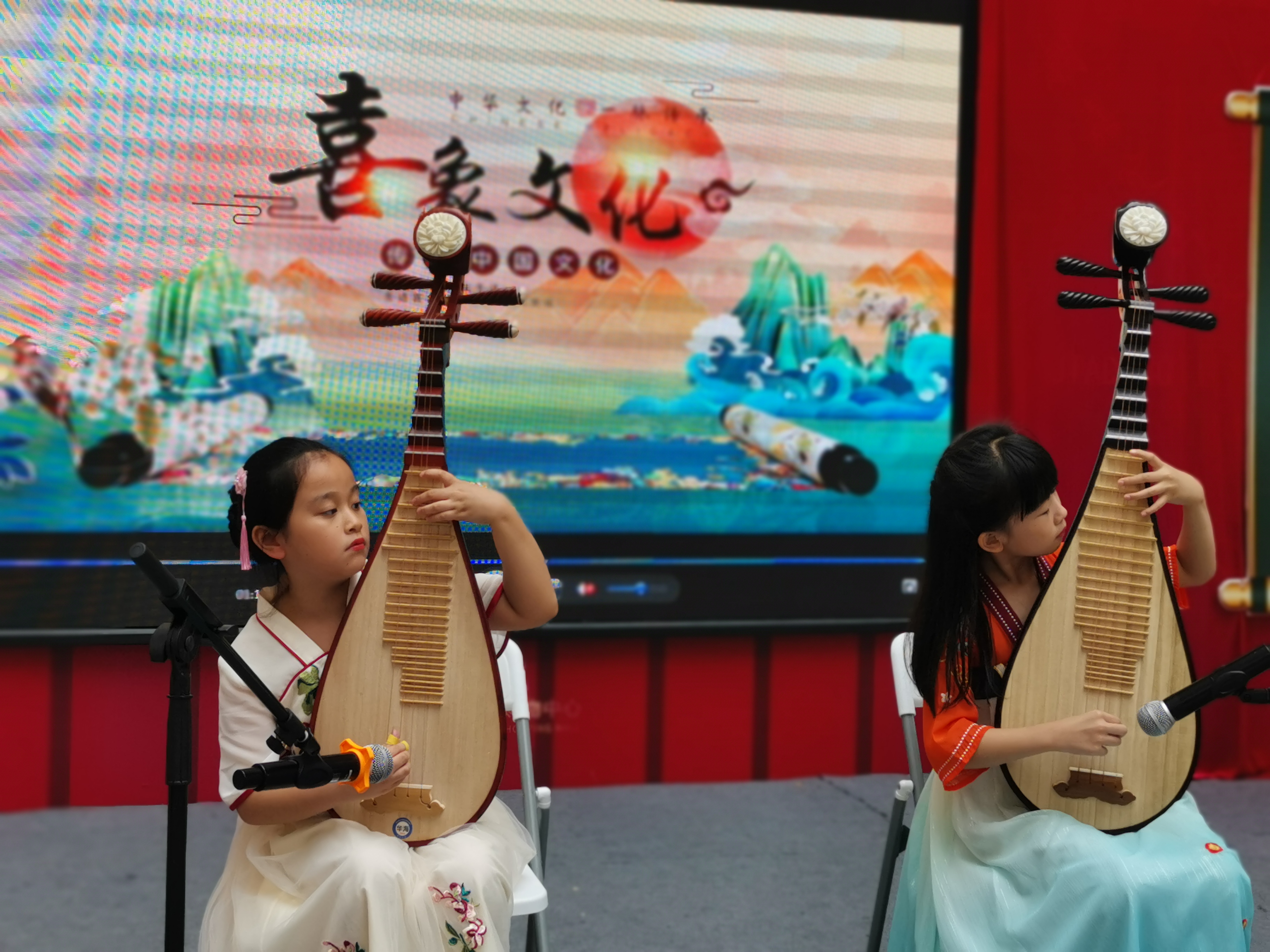 活动现场还有书法、国画体验,茶艺文化展示、琵琶演奏、诗朗诵等,旨在为孩子们打造近距离、可触摸的文化体验活动。