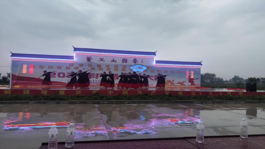 此次大赛及汇演在董艾村大舞台举行。大家没有被酷暑天气和雨水阻挡住热情,早早地到广场上等待着演出。活动主持人介绍了此次献礼建党一百周年活动主题及争创美丽庭院的工作内容。