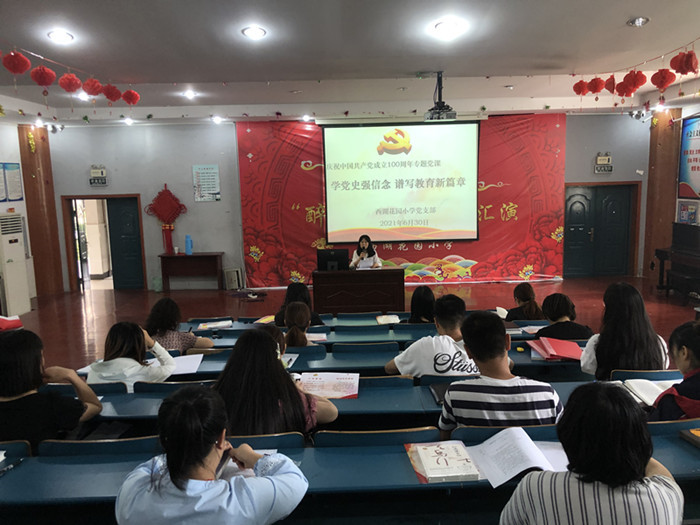 “七一”前后,花山区教育系统紧紧围绕习近平总书记在党史学习教育动员大会和庆祝中国共产党成立100周年大会上的重要讲话精神,围绕习近平总书记关于党的历史的重要论述,组织各中小学、幼儿园党支部(总支)书记为党员教师上党史专题党课,使广大党员干部从党史专题党课中受洗礼、得启迪、有提升,凝聚起奋进新时代、开启新征程的强大力量。