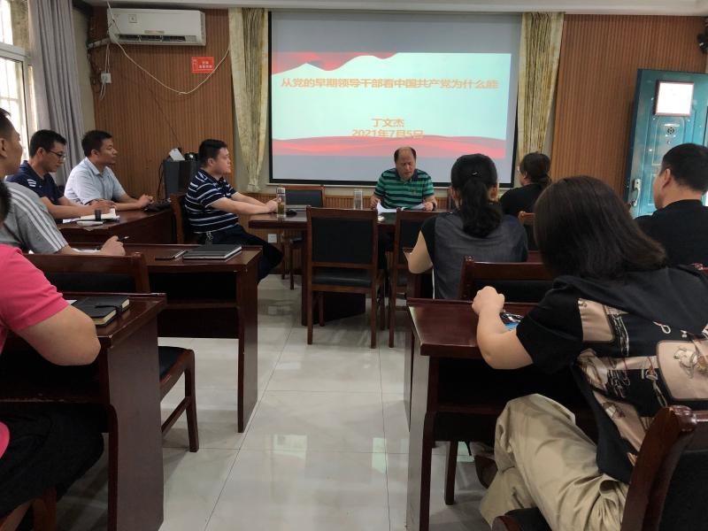 7月5日下午,中共花山区教育局党委书记杨学震为教育局机关25名党员上了一堂题为《中国共产党的光辉发展历程》的党史专题党课,党课通过详实的历史图文资料详细介绍了中国共产党党史发展脉络、学习意义及中国共产党百年历史的四个发展阶段;杨学震还带领全体党员学习了习近平总书记在庆祝中国共产党成立100周年大会上的重要讲话精神。这堂党课,让全体与会党员深刻领悟了中国共产党是伟大光荣正确的党,党的领导是历史的选择,人民的选择,时代的选择,因为党领导我们实现了民族独立、国家解放、繁荣富强。