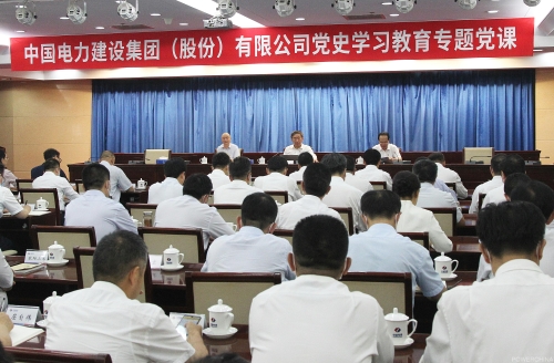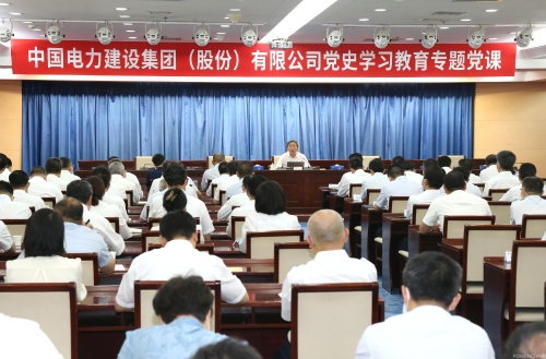 在两个小时的党课中,晏志勇结合电建实际和亲身经历,带领党员干部深刻学习感悟中国共产党百年奋斗的光辉历程和历史性贡献,深情回顾中国电力工业发展历程和中国电建集团取得的辉煌成就。他指出,一百年来,中国共产党团结带领中国人民进行的一切奋斗、一切牺牲、一切创造,归结起来就是一个主题:实现中华民族伟大复兴。为了实现中华民族伟大复兴,中国共产党团结带领中国人民,浴血奋战、百折不挠,自力更生、发愤图强,解放思想、锐意进取,自信自强、守正创新,创造出了新时代中国特色社会主义的伟大成就。在中国共产党的坚强领导下,中国的能源电力工业自力更生、艰苦奋斗、勇于创新,实现了从无到有、从小到大、从弱到强的巨大飞跃,走出了一条波澜壮阔的创新超越之路,为我国经济社会发展提供了坚强的动力支撑。作为中国电力建设的主力军,中国电建及其前身以实干实绩恪守初心使命,始终与国家共进共荣,与民族休戚与共,与时代同向同行,从时代中汲取力量,推动时代不断前进,一代代中国电建人胸怀远大理想,满怀家国情怀,为祖国的水电发展做出了重大贡献。中国电建的发展史既是一部技术进步史、管理革新史,也是一部思想解放史、改革开放史,更是一部国家奋进史、民族自强史。