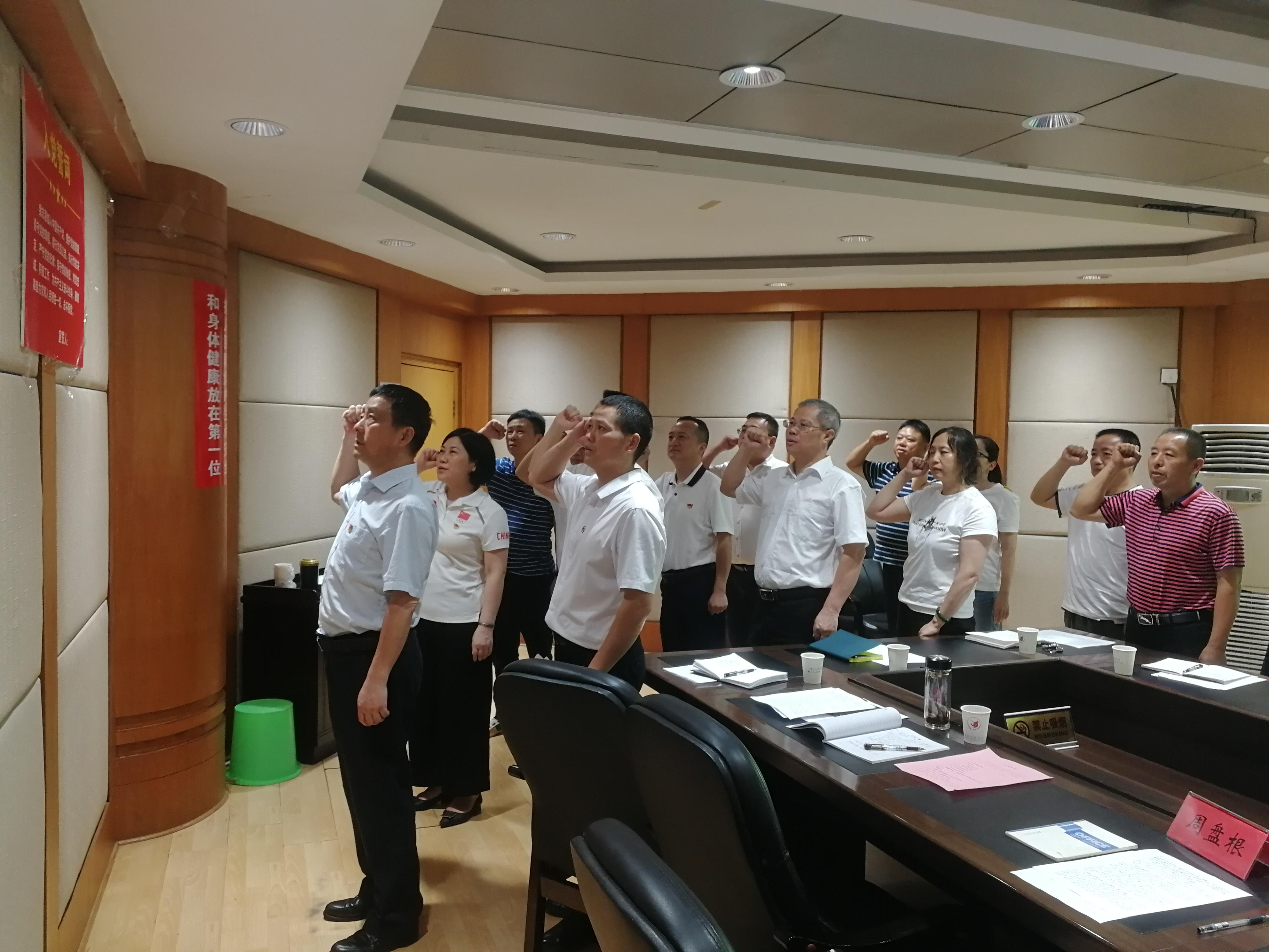 会上,大家面对党旗,高举右手,在肖智亮的领读下,重温了入党誓词。接下来,五支部以“党旗在基层一线高高飘扬”为主题开展系列活动。