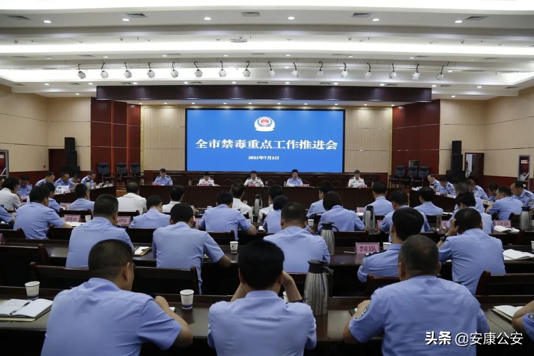 7月2日,安康市召开禁毒重点工作推进会议,深入贯彻习近平总书记关于禁毒工作重要指示精神,传达学习中共中央、国务院两办关于禁毒工作相关文件和省委省政府领导同志对禁毒工作有关批示精神,积极落实全国“净边2021”专项行动推进会议精神。副市长、市禁毒委主任、市公安局党委书记、局长张维护出席会议并讲话,市公安局党委副书记、常务副局长张鹏主持会议,市禁毒委副主任兼禁毒办主任、市公安局党委委员、正县级侦查员李友良通报上半年禁毒工作进展情况,市公安局班子成员出席会议,各县区禁毒委主任、公安机关分管禁毒工作领导,市公安局各部门负责人参加会议。会议听取了各县区禁毒委主任禁毒工作专题汇报。