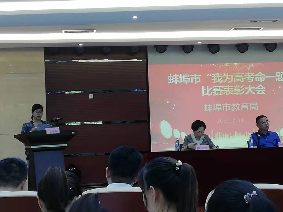 蚌埠市“第二届我为高考命一题”为主要内容的命题比赛活动圆满结束。7月11日上午9:00在蚌埠三中报告厅,蚌埠市教育局召开了蚌埠市“我为高考命一题”比赛表彰大会。