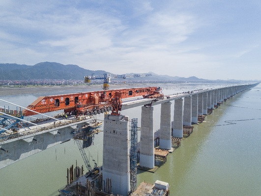 当日,我国自主研发的“昆仑号”千吨级运架一体机在中铁十一局承建的新建福厦铁路湄洲湾跨海大桥建设现场,圆满完成最后一孔40米高铁箱梁架梁任务。接下来,在经过拆解、运输、组装之后,这台体现我国高铁桥梁架设最先进技术的大国重器将在浙江参与杭衢铁路的建设。