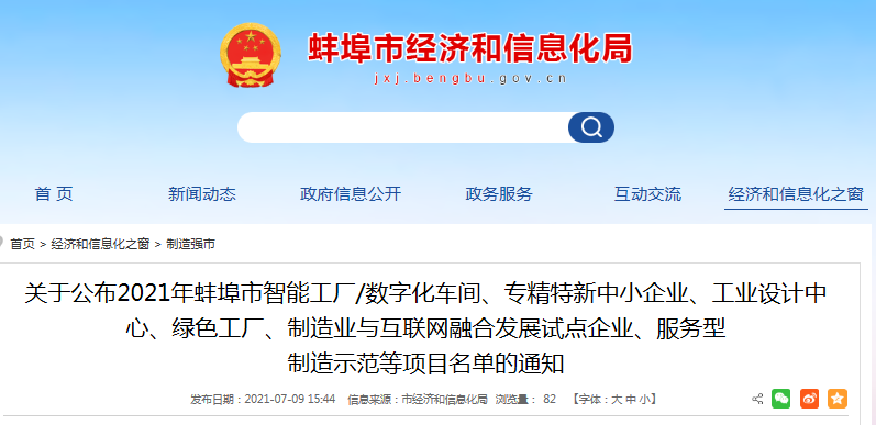 2021年蚌埠市智能工厂/数字化车间、专精特新中小企业、工业设计中心、绿色工厂、制造业与互联网融合发展试点企业、服务型制造示范等项目名单近日公布,我区这些企业上榜!