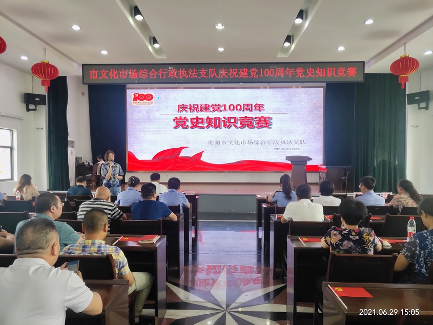 为庆祝中国共产党成立100周年,深入开展党史学习教育,营造更加浓厚的学习氛围,进一步引领文化执法人强化责任担当、勇于攻坚克难,在新时代、新征程的伟大实践中建功立业、实现人生价值,6月29日下午,市文化市场综合行政执法支队举办庆祝中国共产党成立100周年系列竞赛活动,全支队干部职工接受了一次“红色”洗礼。