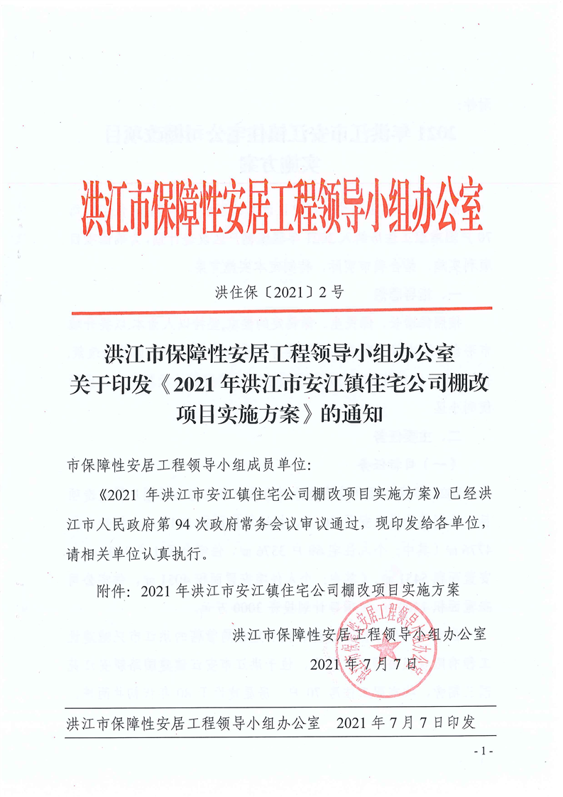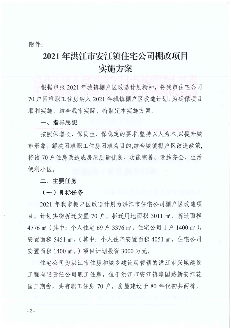 洪江市保障性安居工程领导小组办公室关于印发《2021年洪江市安江镇住宅公司棚改项目实施方案》的通知