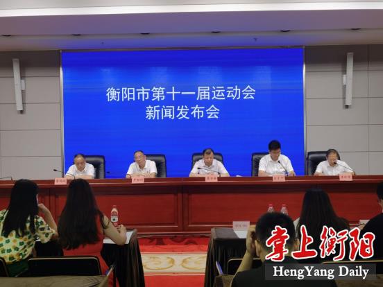7月15日,我市召开第十一届运动会新闻发布会,公布了大会的主题口号、会徽、吉祥物“衡衡、阳阳”和相关筹备情况。副市长龚学余出席并与其他相关领导一起回答了记者提问。