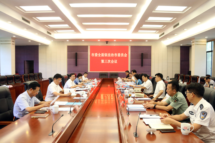会议传达学习了省委全面依法治省委员会第四次会议和省委全面依法治省工作会议精神,听取我市2020年全面依法治市工作情况汇报,研究审议《关于深入学习宣传贯彻习近平法治思想推进全面依法治市的意见》《2021年市委全面依法治市工作要点》《法治化营商环境工作实施方案》(审议稿)起草说明,以及2021年度政府立法工作计划。会议对全面依法治市工作所取得的成绩给予充分肯定,要求要提高政治站位,坚持把习近平法治思想作为法治岳阳建设的根本遵循和行动指南,把学习贯彻习近平法治思想作为重大政治任务,深化学习宣传贯彻,不断增强全市广大党员干部的法治思维、法治意识和法治观念。要强化法治保障,在宪法和法律的框架内,以法治思维和方式做好每一项工作,主动服务经济高质量发展,着力打造法治化营商环境。要增进民生福祉,始终坚持以人民为中心,着力解决法治领域突出问题,加快补齐民生保障和社会治理方面存在的法规制度短板,努力让群众在每一次执法行为、每一个司法案件中感受到公平正义。要全面加强党的领导,压紧压实法治建设工作责任,严格按照法定权限和法定程序行使权力、履行职责。