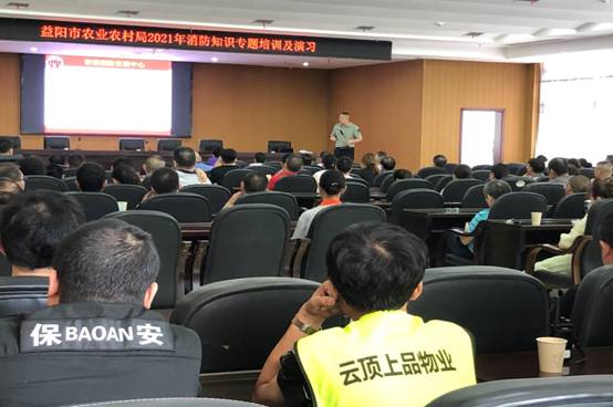 为进一步提高全局干职工的消防安全意识,全力普及消防安全知识,贯彻“预防为主、防消结合”的消防工作方针,7月15日上午,益阳市农业农村局在局办公楼开展消防安全知识专题培训和演练。二级调研员曹卫飞主持并讲话,在局机关大楼上班的全体干职工,市农科所、市农业示范场、市畜禽良种场副科级以上干部,天马农业局物管处工作人员共计150余人参加。