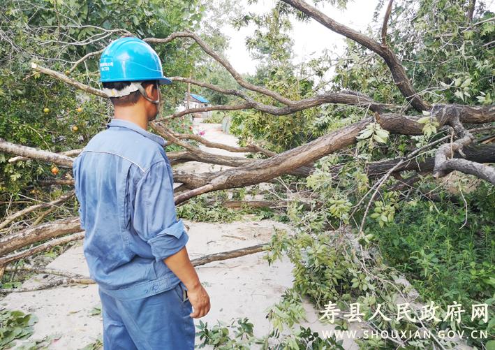 7月15日下午3时50分左右,寿县部分地区发生大风雷雨天气,平均风力达10级以上。雨急风大,不仅造成多条县道、乡道被断裂树木堵塞,更导致保义、安丰、茶庵、众兴、瓦埠、大顺等部分乡镇的电力设施受到严重损坏,短时间内造成34条10千伏线路、805个台区停运,86799户客户用电受到影响。