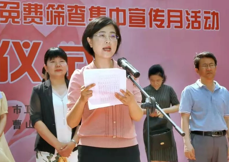 市卫健委副主任黄莺宣读蚌埠市民生工程城镇低保适龄妇女“两癌”免费筛查专家宣传团成员名单。