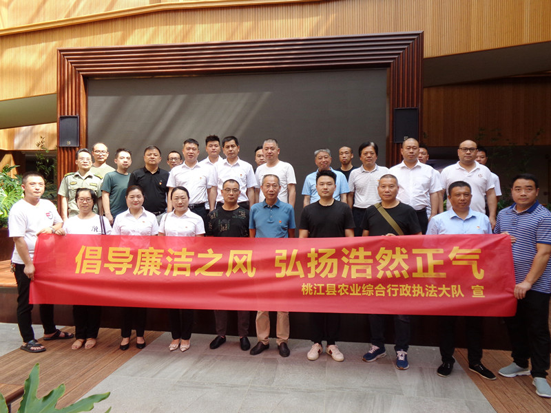 7月15日,桃江县农业综合行政执法大队组织渔政、畜牧、农业、农机、综合等5个执法中队的28名执法队员,前往位于桃花江竹海的益阳竹廉文化教育基地接受廉政教育,进一步筑牢执法人员拒腐防变底线。县纪委监委驻农业农村局纪检监察组工作人员一同参加了廉政教育活动。