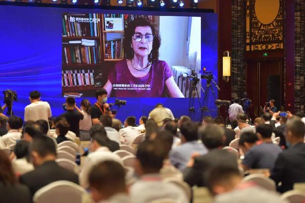 ▲ 国际玻璃协会主席艾西莉亚·杜兰在会上作视频致辞