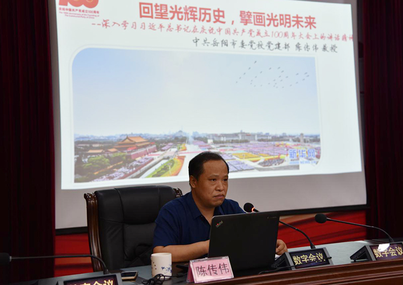 为认真学习贯彻习近平总书记在庆祝中国共产党成立100周年大会上的重要讲话精神,把学习落实到具体行动,认真总结上半年工作,扎实部署下半年工作,7月16日,局党组书记、局长陈峰主持召开局党组中心组2021年第十次集中(扩大)学习暨上半年工作总结大会。会议邀请了市委理论宣讲团成员、市委党校党建教研部主任陈传伟教授作学习贯彻习近平总书记“七一”重要讲话精神专题辅导。局在家的党组班子成员、正副调研员,全体机关干部、直属单位主要负责人、局属各党支部(总支)书记约160人参加会议。