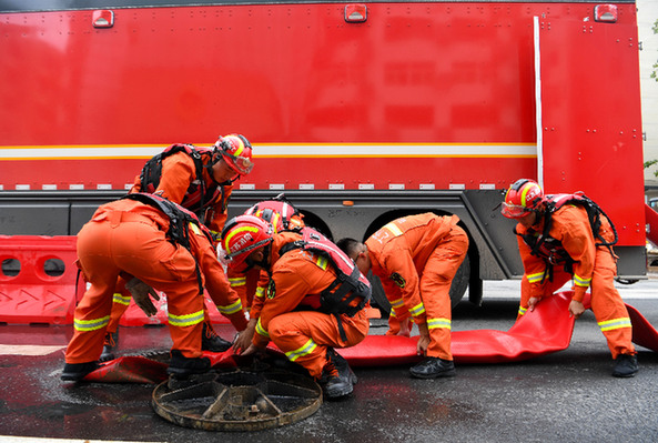 7月20日,受强降雨影响,河南郑州遭遇洪涝灾害。作为郑州重要的市内交通通道,暴雨过后的桐柏路下穿陇海路隧道严重积水。江苏消防救援总队徐州支队奉命连夜赶到,并迅速安装设备抽水排涝。