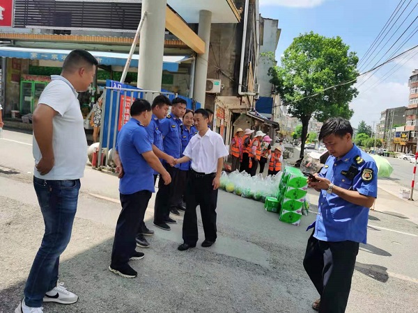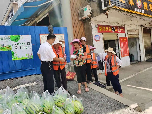 (本网讯)连日来,气温节节攀高,在如此酷热难耐的天气里,依然有这么一群人迎着酷暑,顶着烈日,始终默默坚守岗位,用辛勤的汗水维护着梁子镇干净、整洁的环境。7月23日下午,梁子镇党委书记张海山来到长岭集贸市场,走访慰问高温下坚守一线的环卫工人和城管执法队员,并为他们送去了西瓜、绿豆、人丹、藿香正气液、风油精、绿茶等防暑降温慰问品。